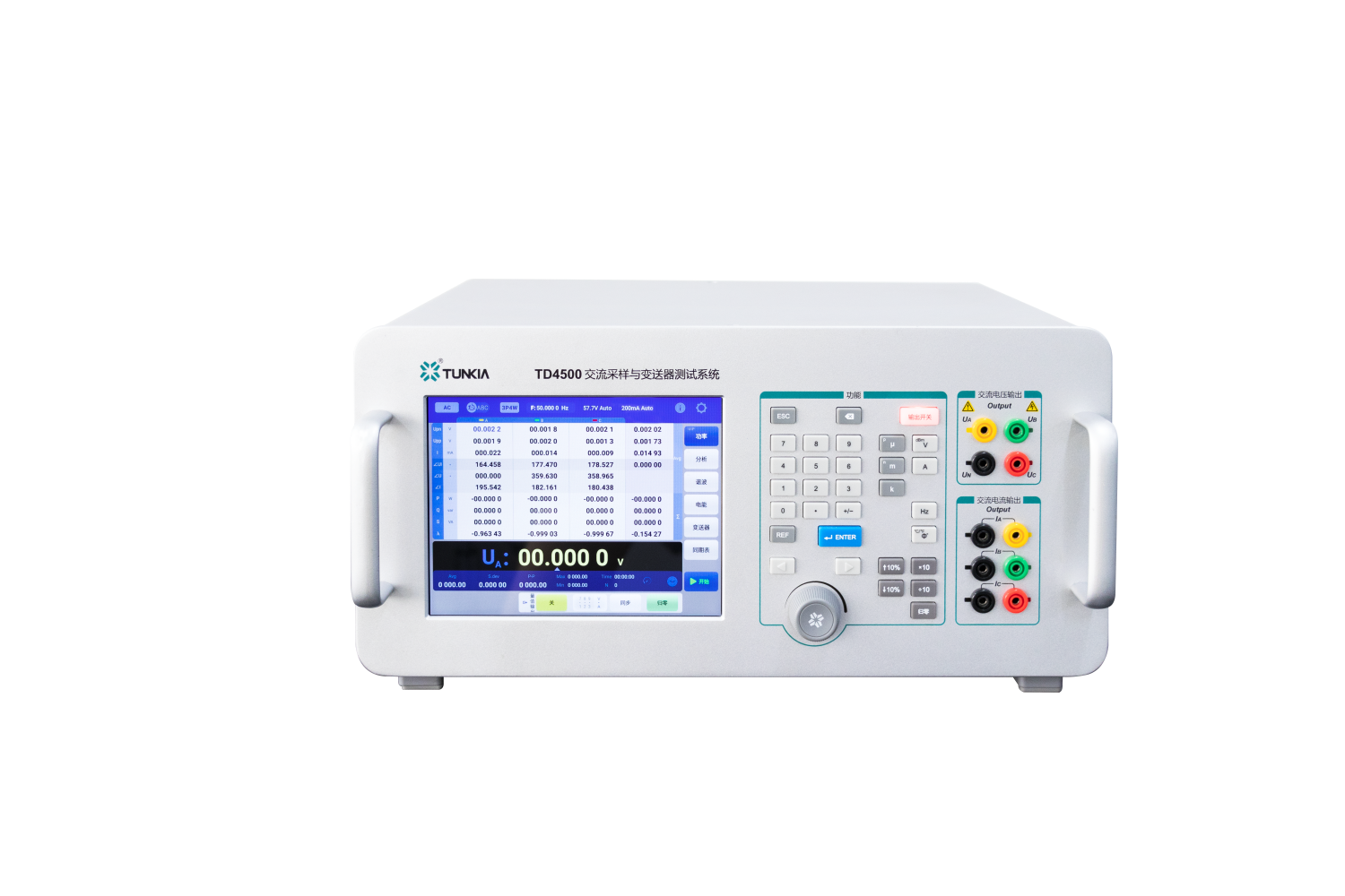 TD4500 is a multi-function 3PH power calibrator. Class 0.02 / class 0.05 available. It integrates AC/DC power output function, 3PH measuring function, harmonic function, transmitter test function, U4th voltage output function, AC energy meter test function. Can be used to calibrate AC/DC voltmeter, AC/DC ammeter, AC/DC power meter and transmitter, etc.